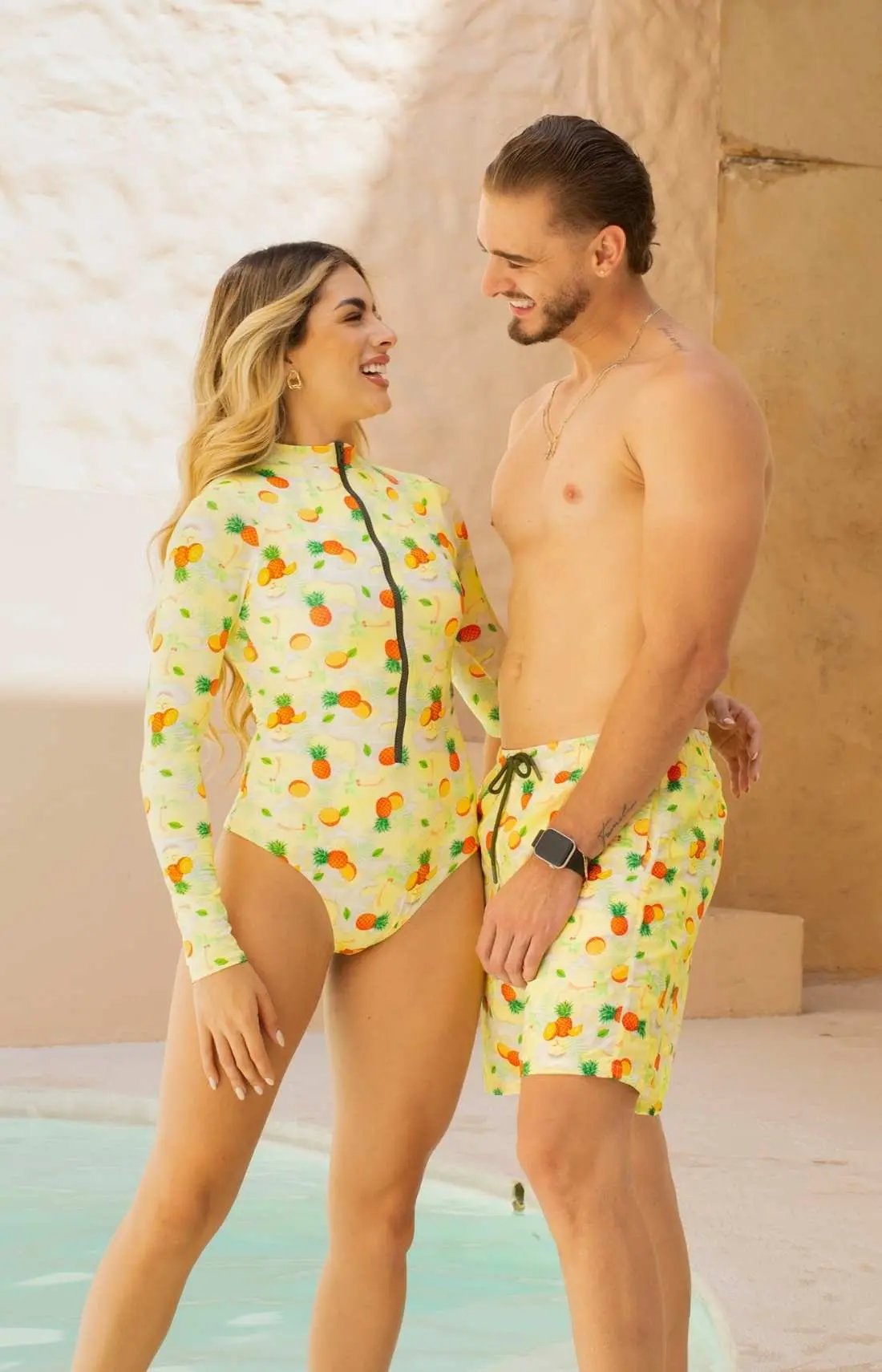 Explora la naturaleza con estilo y comodidad con este vestido de baño manga larga de la colección Familiares 2026. Disponible en dos estampados únicos entre cocos y piñas y la .